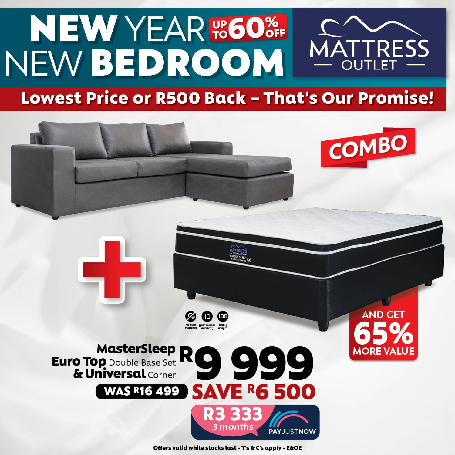 Master Sleep Euro Top Double Base Set & Universal Couch Combo Deal