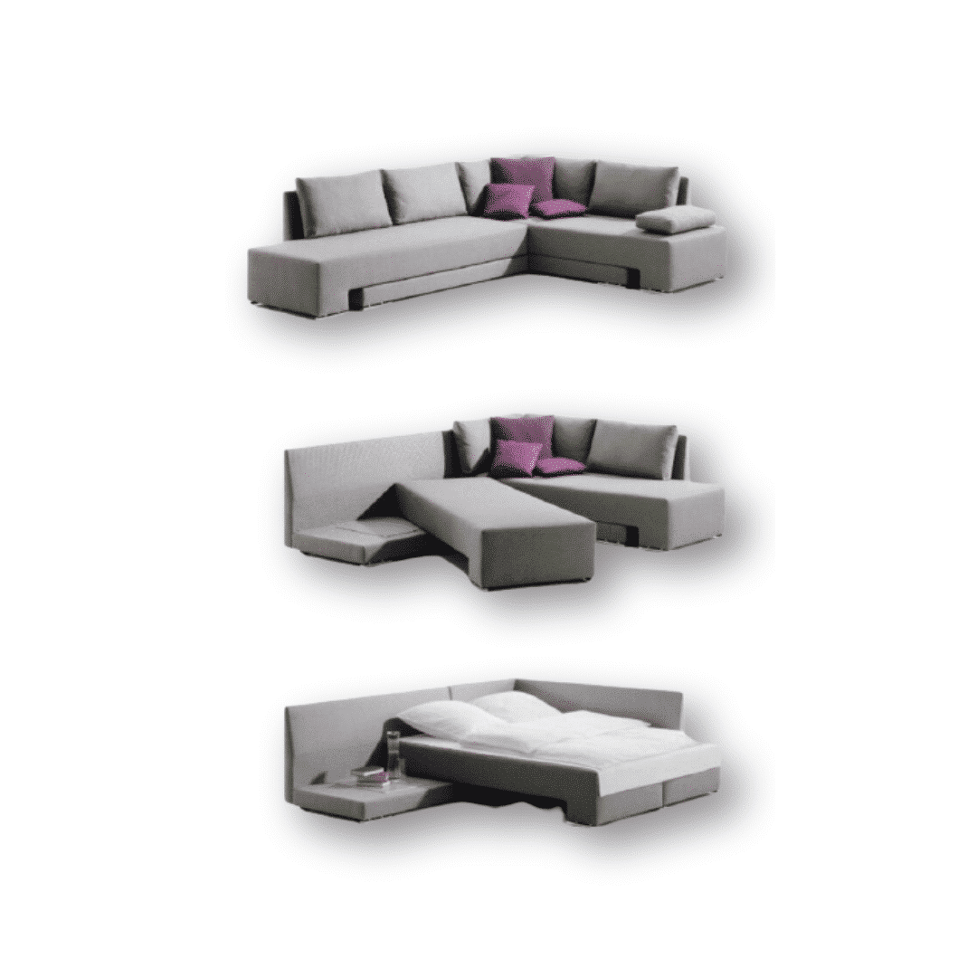 The Bella Corner Sleeper Couch transforms into a comfortable bed fast and effectively, where you don’t even have to remove the cushions. Moving away from the definition of single purpose units, modern furniture have evolved into multi-talent transformers that can save a lot of space by serving multiple functions. A perfect example is the smart and stylish Bella Corner Sleeper Couch. The Bella Corner Sleeper Couch does away with the conventional approach of using metal joints and complicated mechanisms. It transforms into a solid double bed with one move, simply by rotating one of the large main cushions net to the other main cushion.