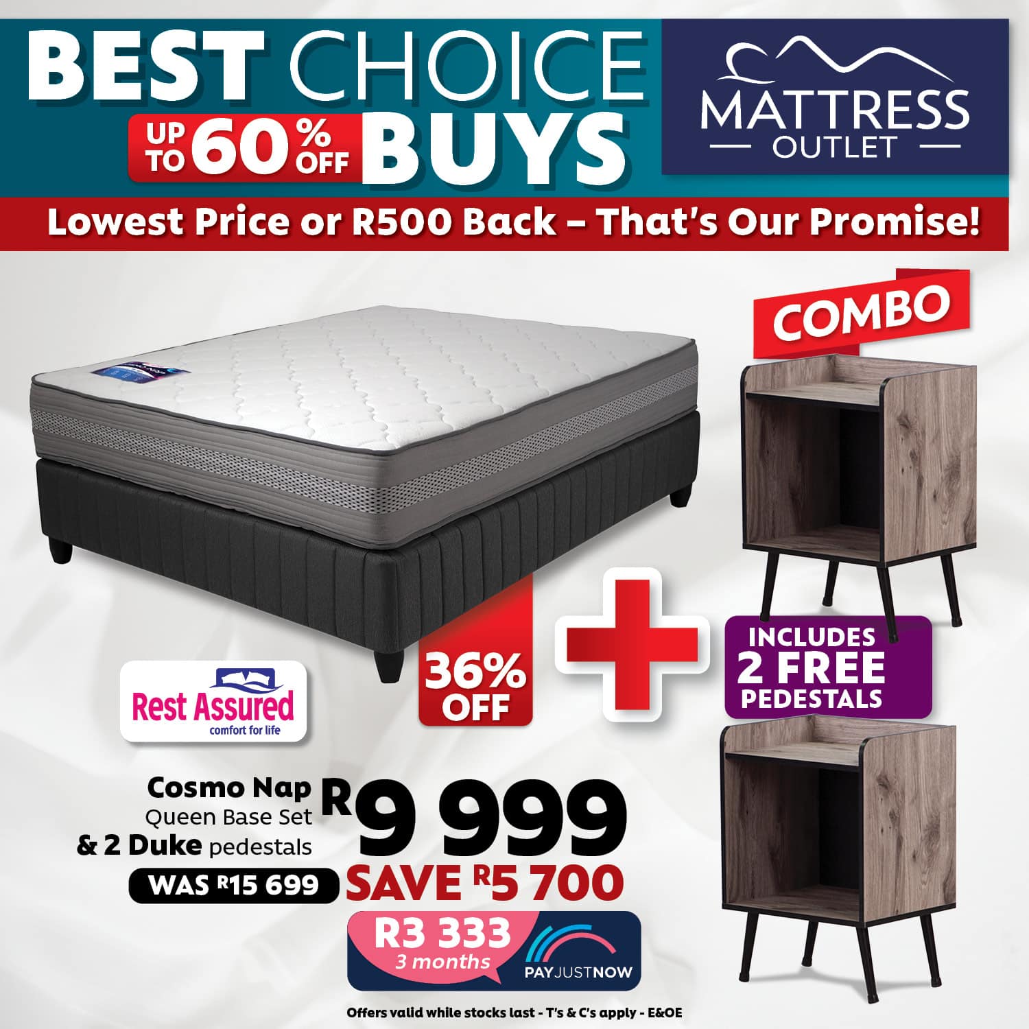 Rest Assured Cosmo-Nap Base and Mattress & 2 Duke Pedestals