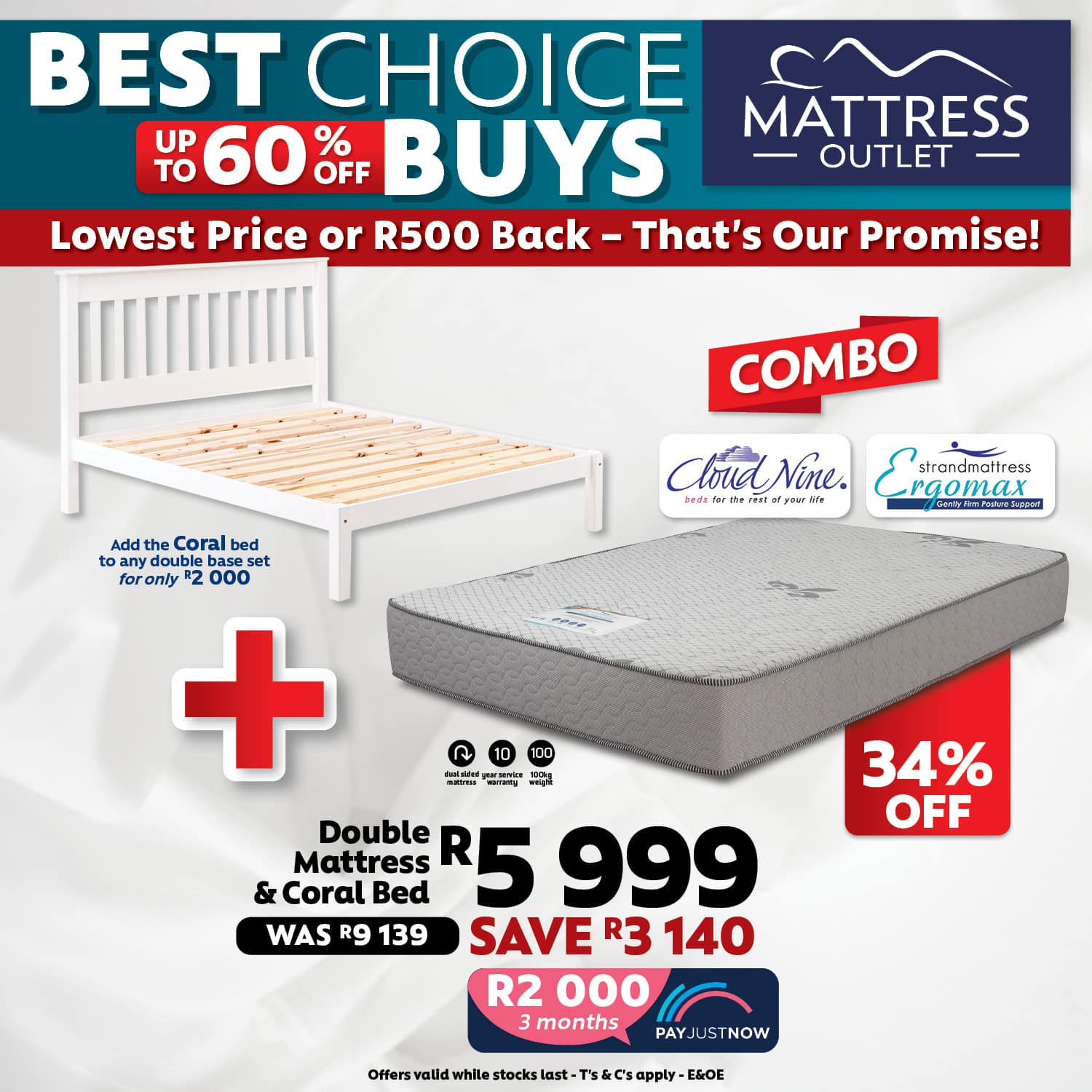 Ergomax Double Mattress & Coral Bed Combo