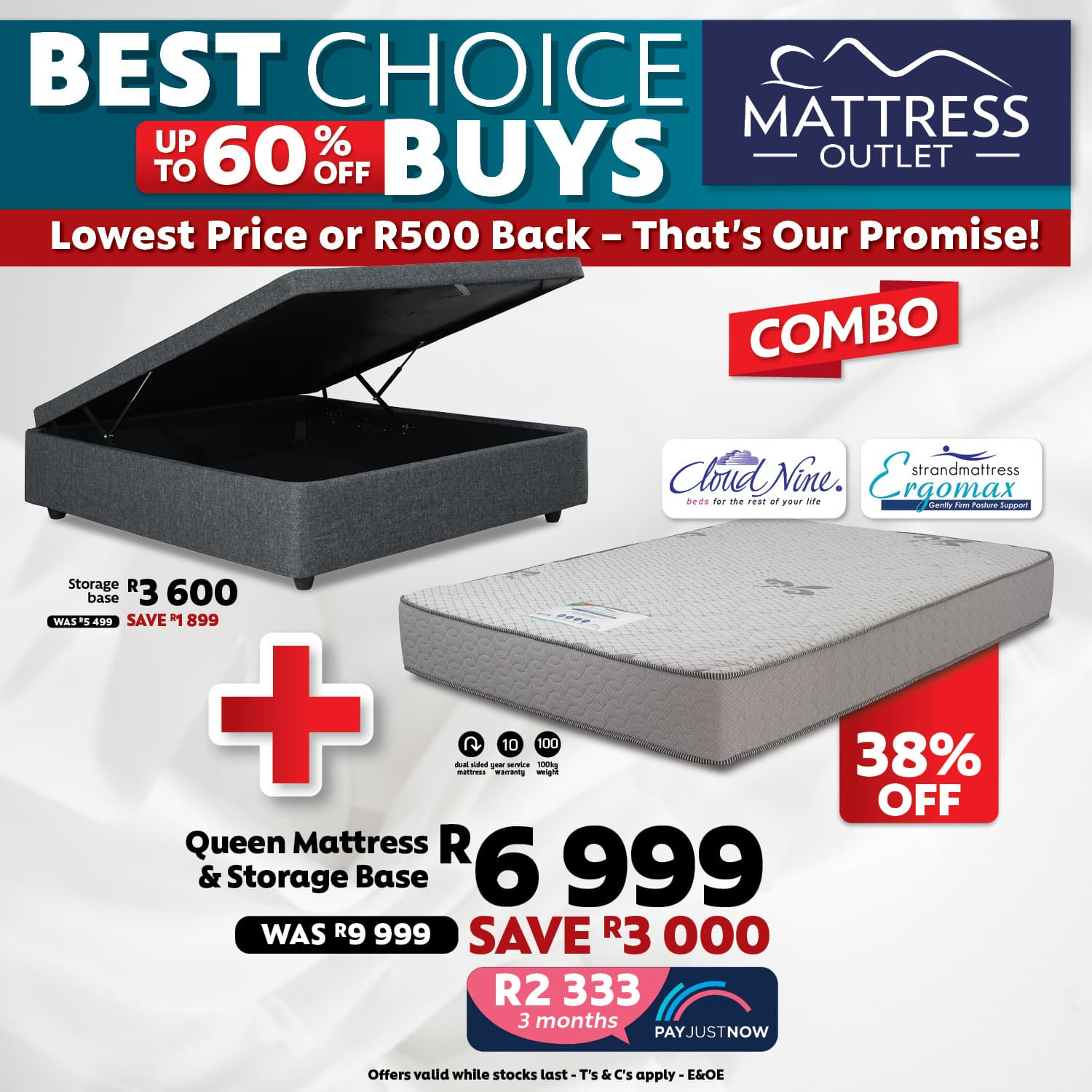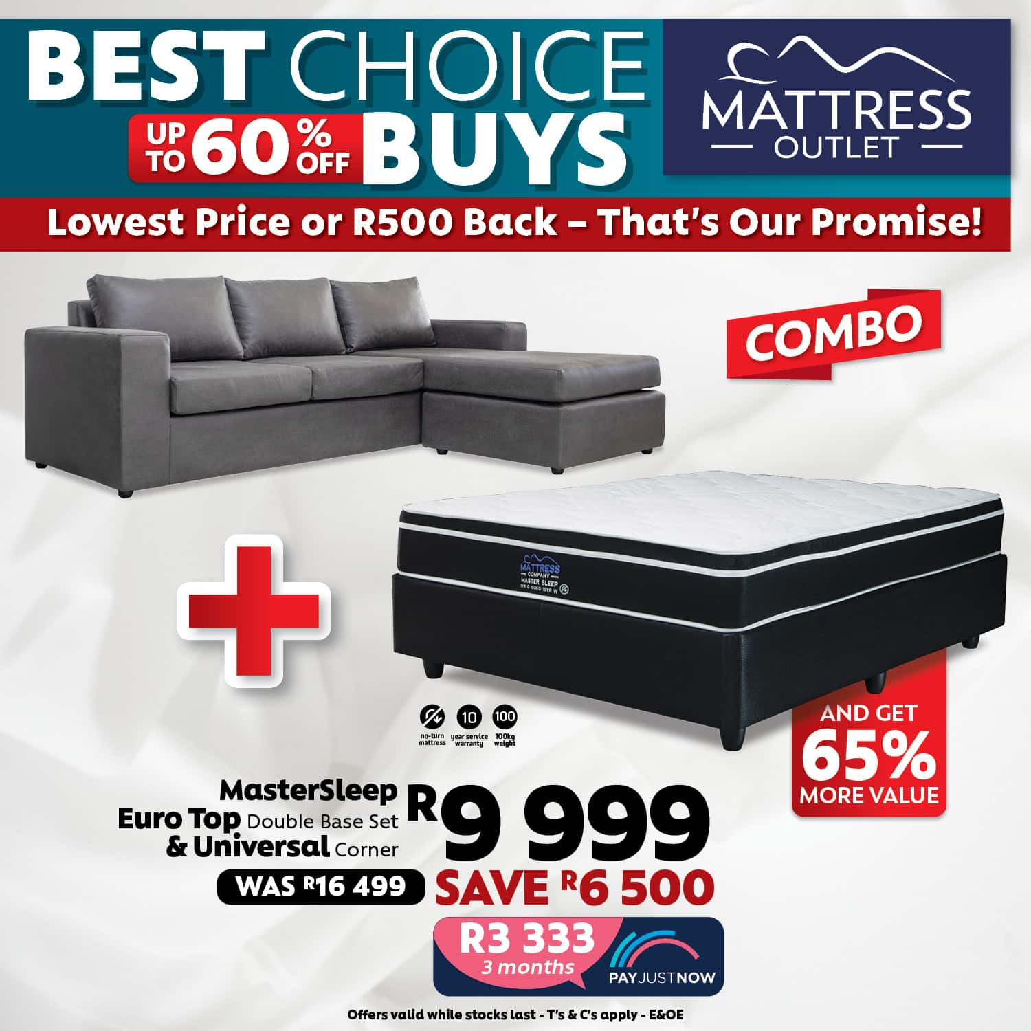 Master Sleep Euro Top Double Base Set & Universal Couch Combo Deal